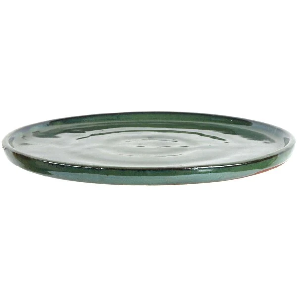 Bonsai Untersetzer (glasiert, grün, rund) in den Abmessungen: 27.5cm Länge, 27.5cm Breite, 1.8cm Höhe. Im Giessverfahren hergestellt. Gute Standardqualität aus der Töpferstadt Yixing.