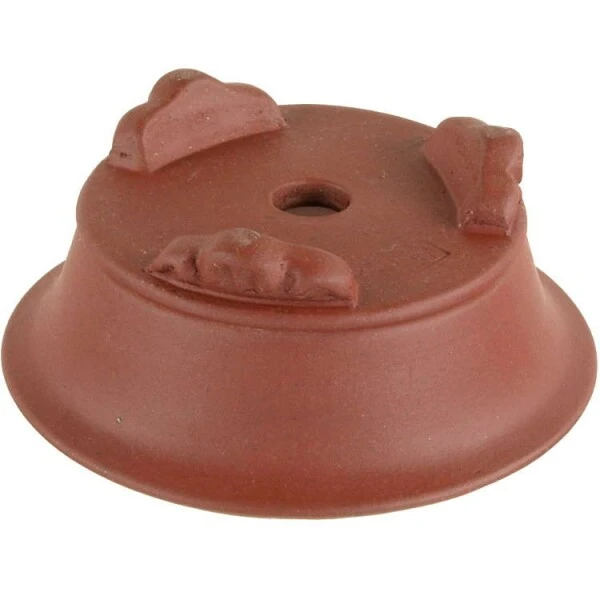 Bonsaischale (Unglasiert, Antik Rotbraun, Rund) in den Abmessungen: 10cm Länge, 10cm Breite, 4cm Höhe.