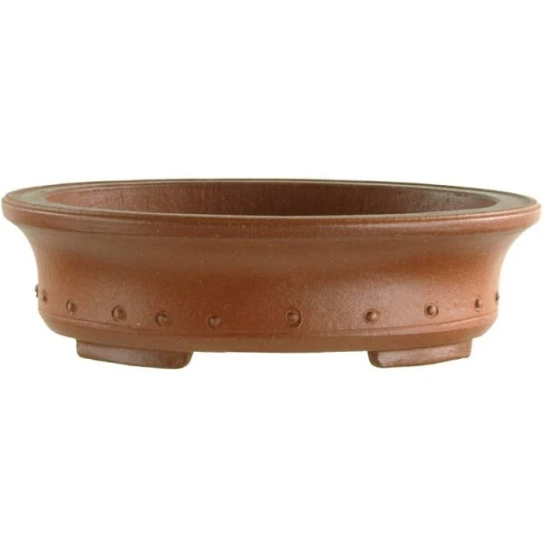 Bonsaischale (Unglasiert, Antik Braun, Oval), Masteredition, in den Abmessungen: 11.7cm Länge, 9.5cm Breite, 3.3cm Höhe.