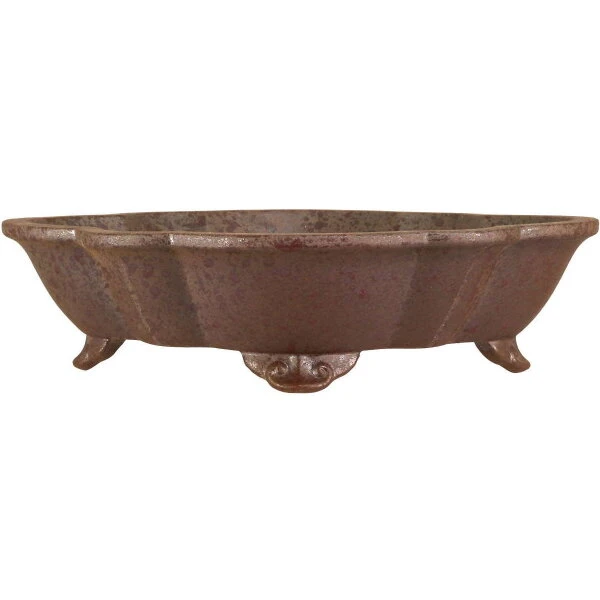 Bonsaischale (unglasiert, braun, lotusfã¶rmig) in den Abmessungen: 25cm Länge, 20.5cm Breite, 6cm Höhe. Sehr gute Qualität aus der berühmten Töpferstadt Yixing.