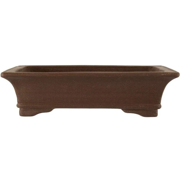 Bonsaischale (Unglasiert, Dunkelbraun, Rechteckig), handgemacht, in den Abmessungen: 30.5cm Länge, 23cm Breite, 8cm Höhe.