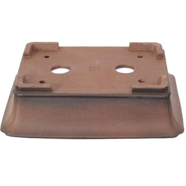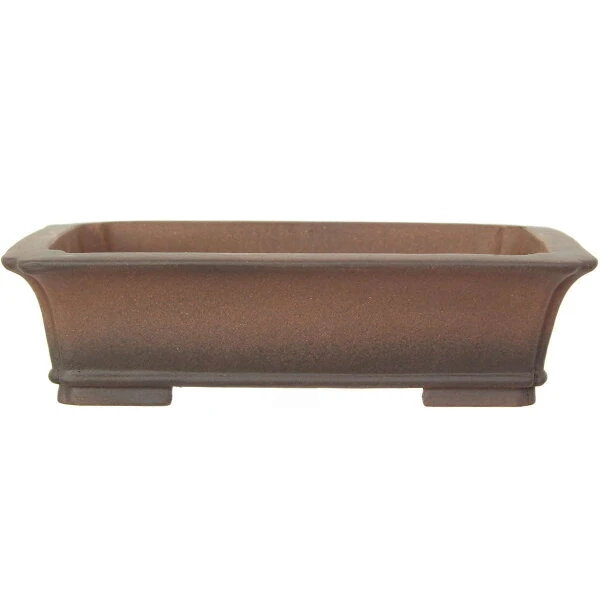 Bonsaischale (Unglasiert, Antik-Braun, Rechteckig), handgemacht, in den Abmessungen: 30.5cm Länge, 24cm Breite, 8cm Höhe.