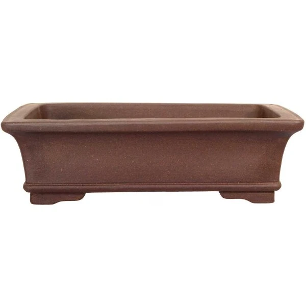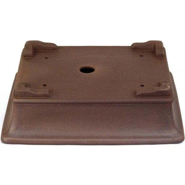 Bonsaischale (unglasiert, braun, rechteckig), handgemacht, in den Abmessungen: 32.5cm Länge, 25.5cm Breite, 9.5cm Höhe.