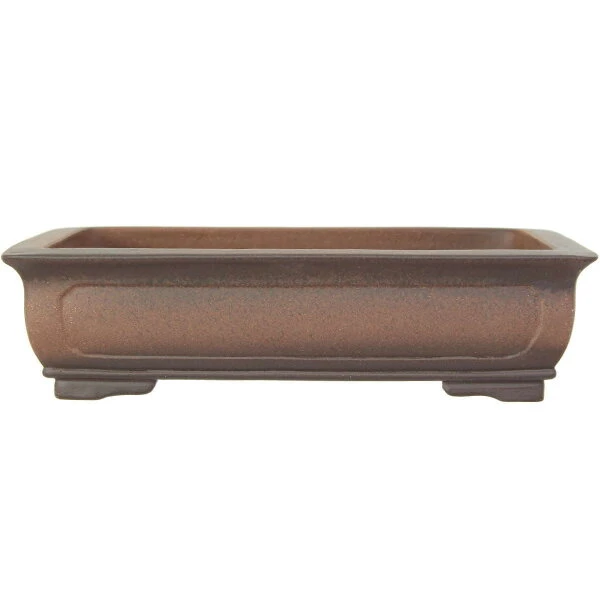 Bonsaischale (Unglasiert, Antik-Braun, Rechteckig), handgemacht, in den Abmessungen: 34.5cm Länge, 26cm Breite, 9cm Höhe.
