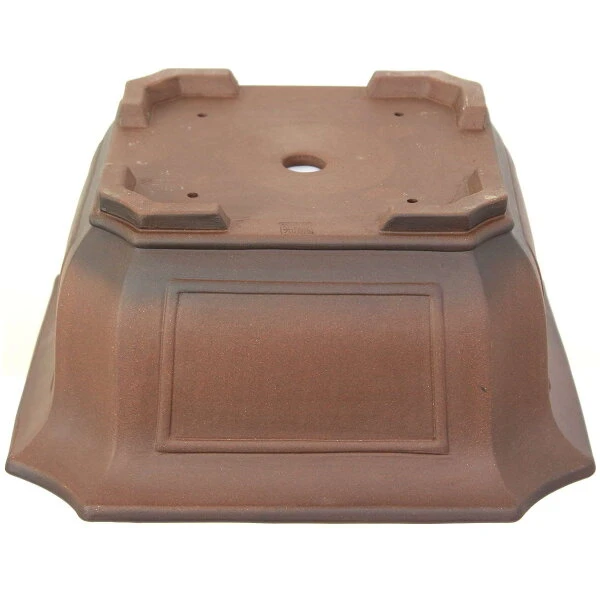 Bonsaischale (Unglasiert, Antik-Braun, Quadratisch), handgemacht, in den Abmessungen: 35cm Länge, 35cm Breite, 17.5cm Höhe.