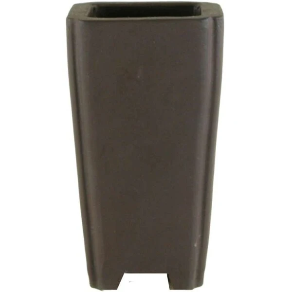 Bonsaischale (Unglasiert, Dunkelbraun, Quadratisch) in den Abmessungen: 4.5cm Länge, 4.5cm Breite, 8cm Höhe.