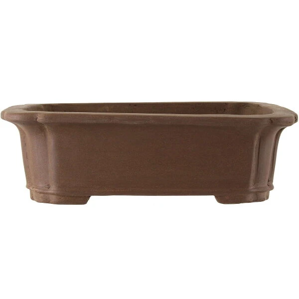 Bonsaischale (Unglasiert, Dunkelbraun, Rechteckig), handgemacht, in den Abmessungen: 40.5cm Länge, 31cm Breite, 12.5cm Höhe.