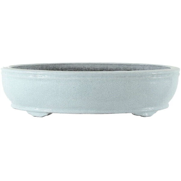 Bonsaischale (Glasiert, Weiß, Oval), handgemacht, in den Abmessungen: 42cm Länge, 31.5cm Breite, 11cm Höhe.
