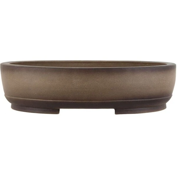 Bonsaischale (unglasiert, antik-grau, oval), handgemacht, in den Abmessungen: 44.5cm Länge, 36cm Breite, 11cm Höhe.