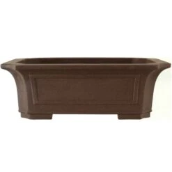 Bonsaischale (Unglasiert, Dunkelbraun, Rechteckig), handgemacht, in den Abmessungen: 50.5cm Länge, 38.5cm Breite, 16.5cm Höhe.