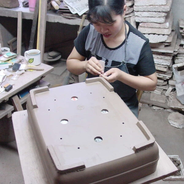 Verwendungszweck: Diese Schale wurde dichtgebrannt und nimmt so kaum Wasser auf. Dadurch ist sie weitestgehend frostfest und wird bevorzugt zum Topfen von Freiland-Bonsai (Outdoor Bonsai) eingesetzt.