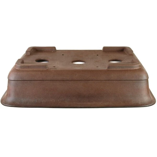 Bonsaischale (unglasiert, antik-braun, rechteckig), handgemacht, in den Abmessungen: 56.5cm Länge, 42cm Breite, 14cm Höhe.