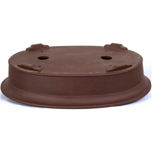 Bonsaischale (unglasiert, braun, oval), handgemacht, in den Abmessungen: 60cm Länge, 43.5cm Breite, 13.5cm Höhe.