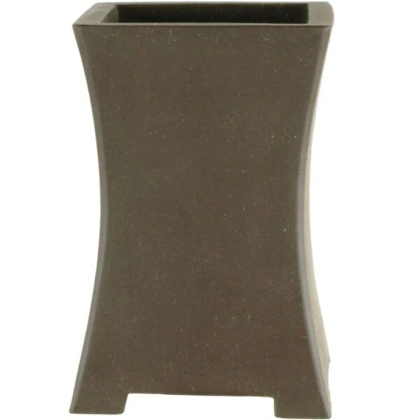 Bonsaischale (Unglasiert, Braun, Quadratisch) in den Abmessungen: 6cm Länge, 6cm Breite, 9cm Höhe.